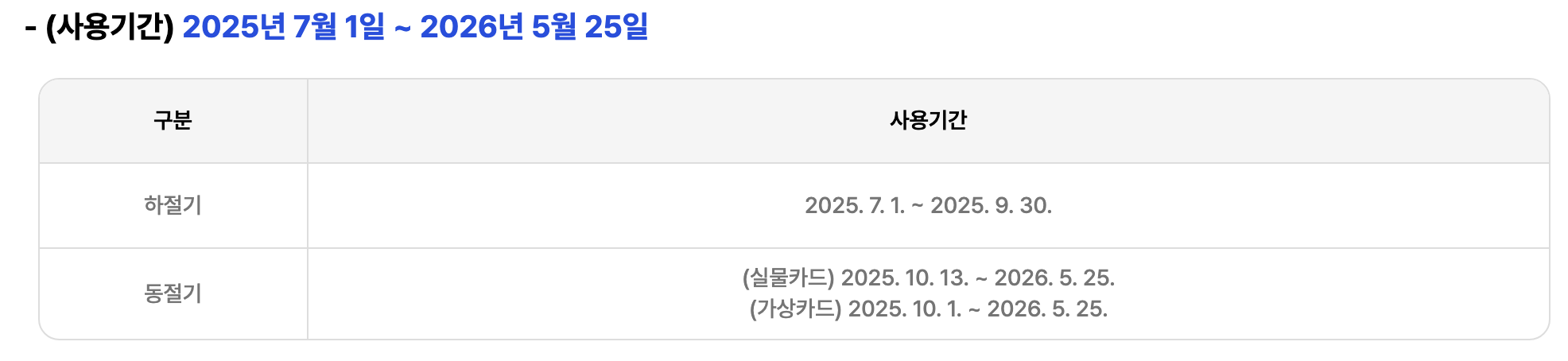 - 2025년 6월 9일 ~ 12월 31일 (하·동절기 통합 접수, 일부 지자체 사전접수 별도)