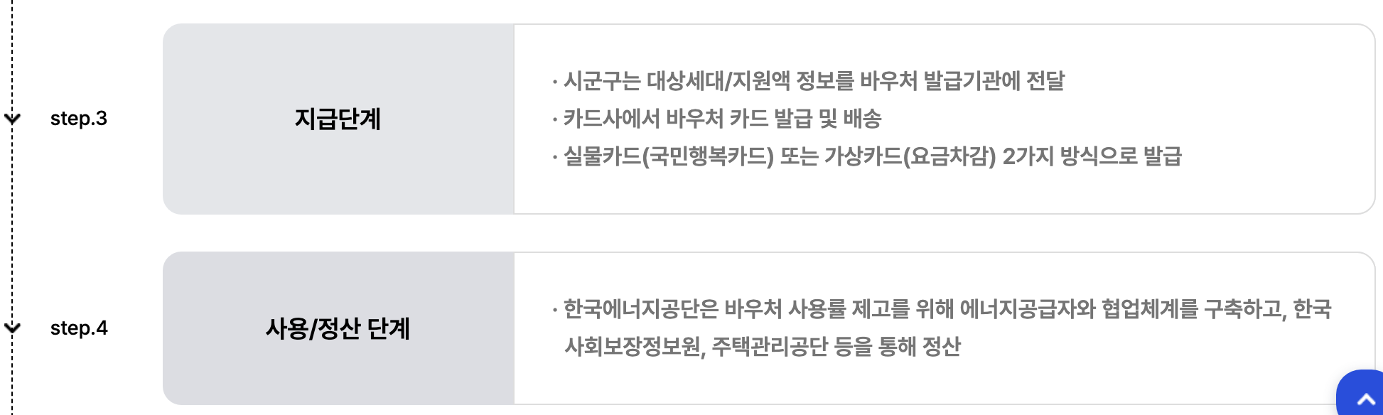 - 단, 모든 세대원이 보장시설 수급자이거나, 타 동절기 연료 지원을 받은 경우(연탄쿠폰 등)는 제외