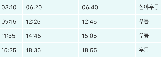 | 03:10 | 06:20 | 06:40 | 심야우등 |